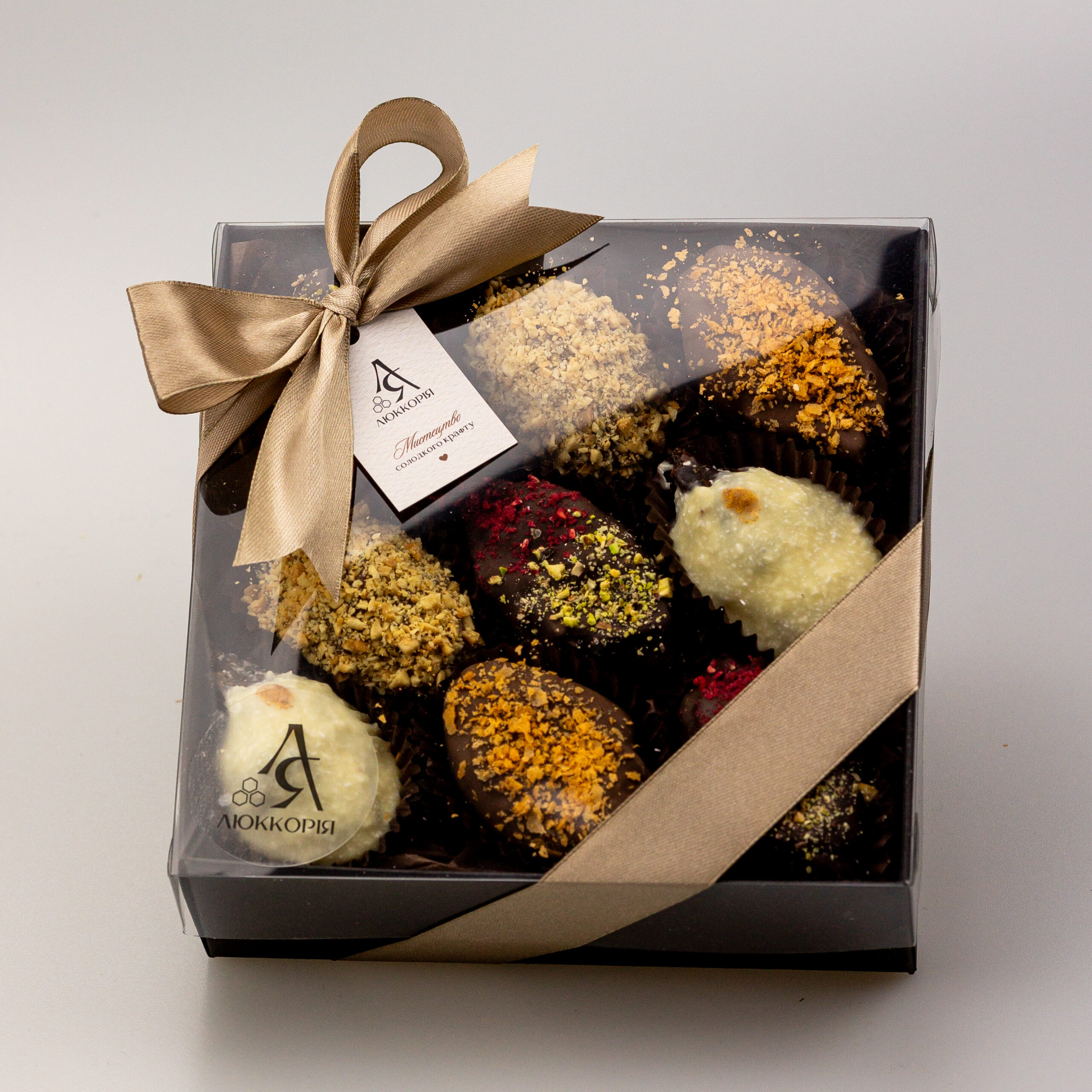 Натуральні фініки з ніжними кремовими начинками та добірними горіхами.
