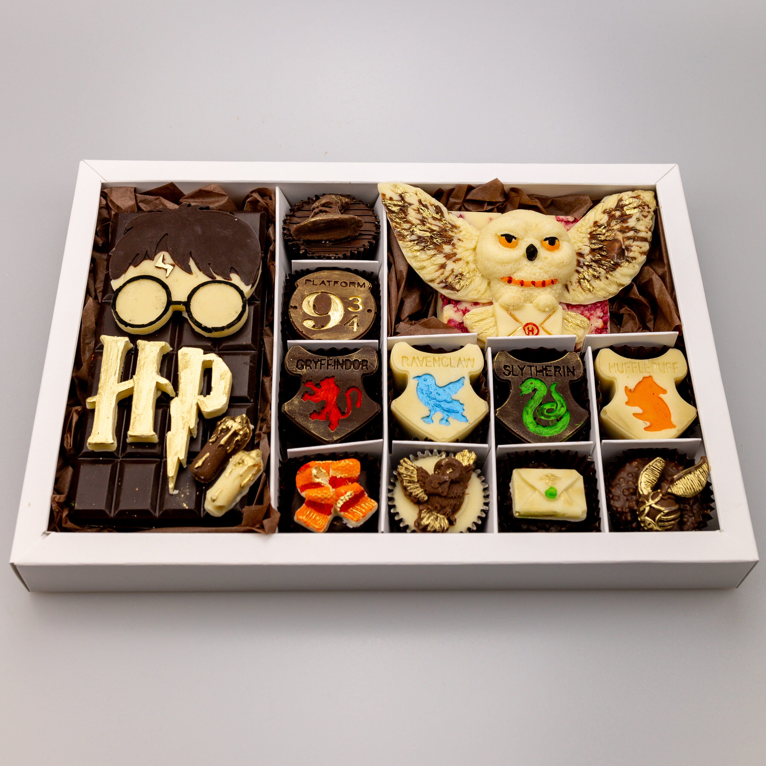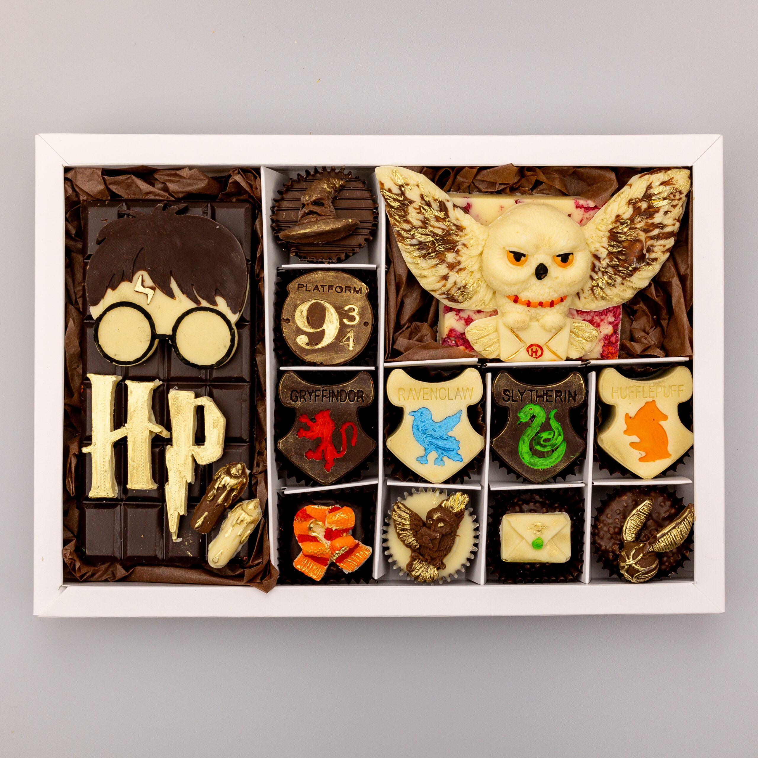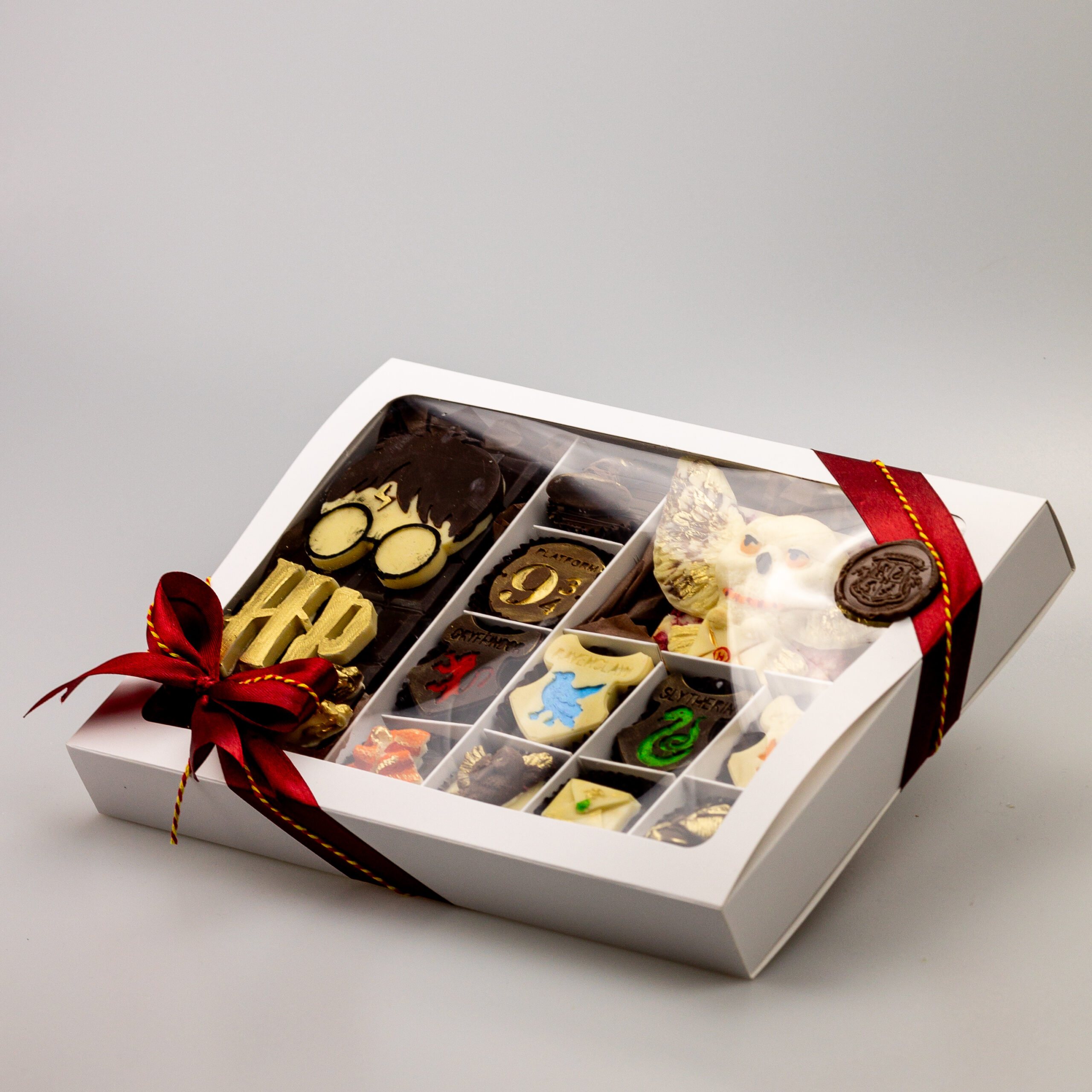 Унікальний подарунковий набір, натхненний світом магії. Авторські цукерки, шоколадні плитки та атмосферні деталі — все, щоб створити справжній ефект Гоґвартсу 🎁