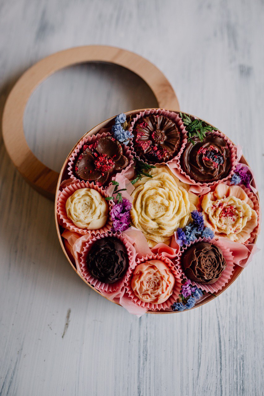🌼 квіти з молочного шоколаду з горіхами та сублімованими ягодами