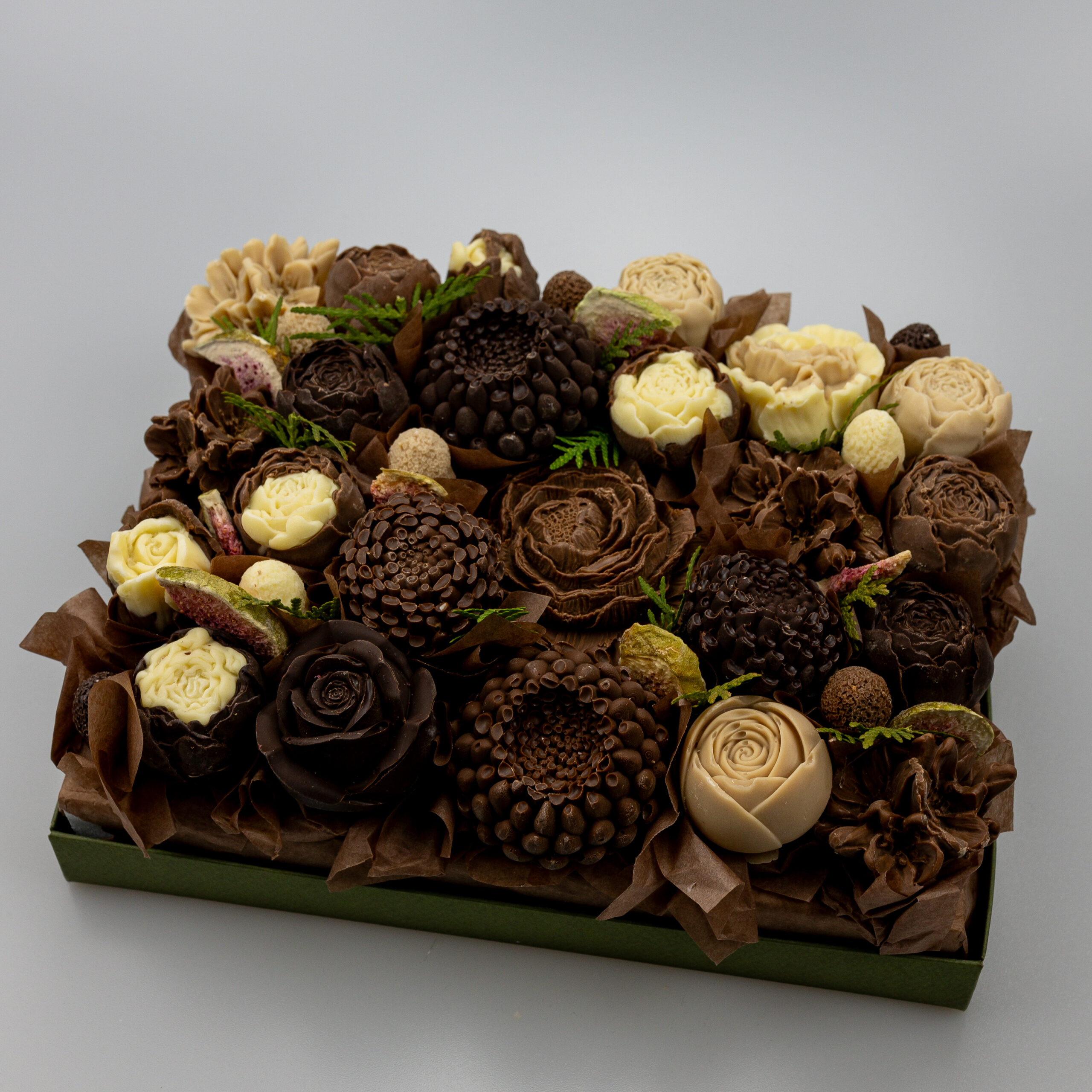 Квіткова шоколадна композиція у подарунковій коробці “Преміум” 🌿