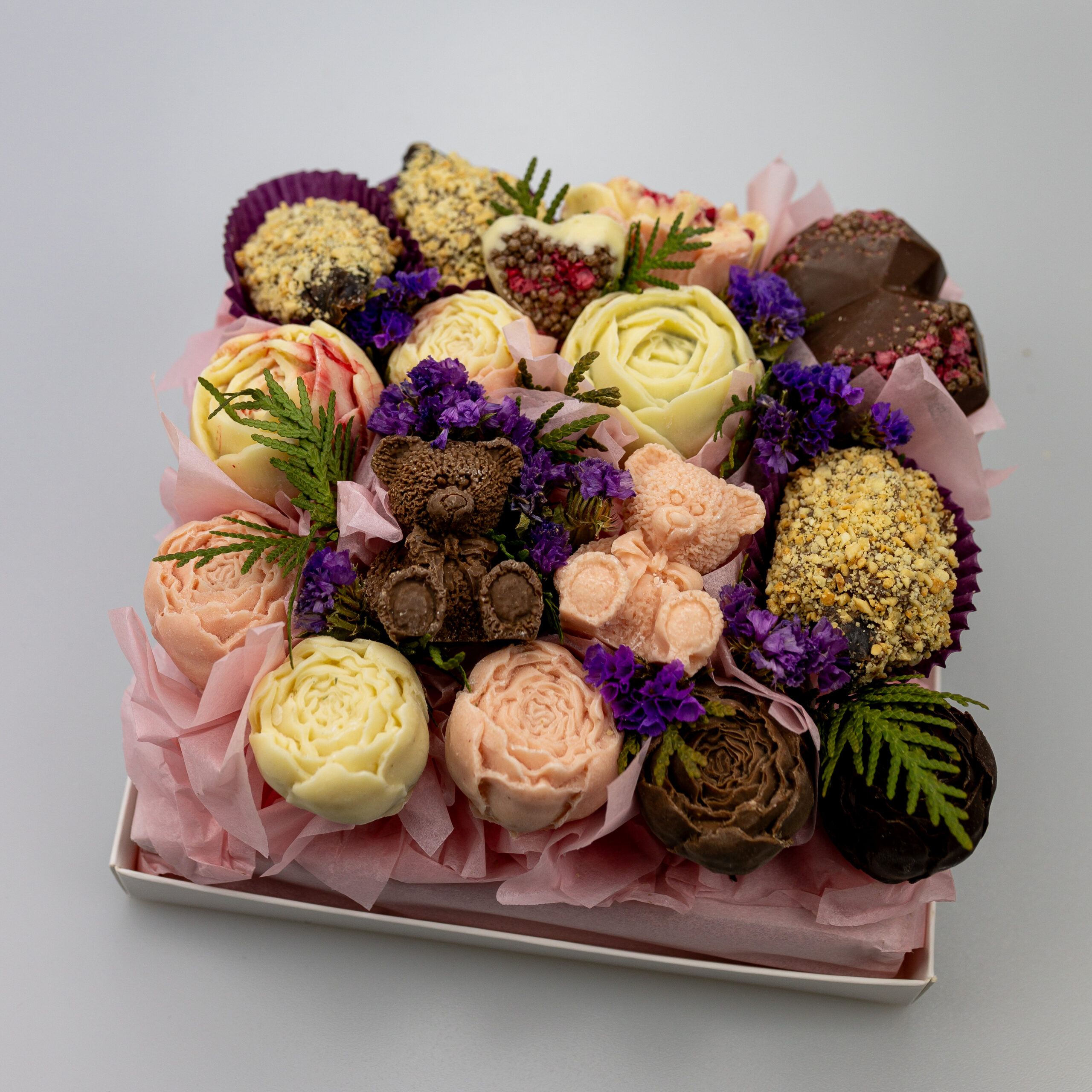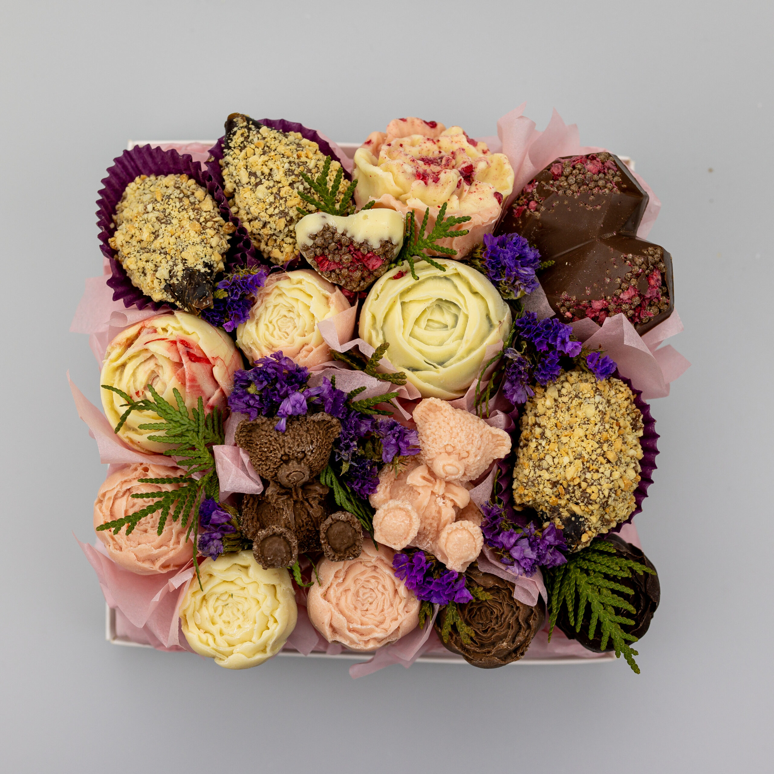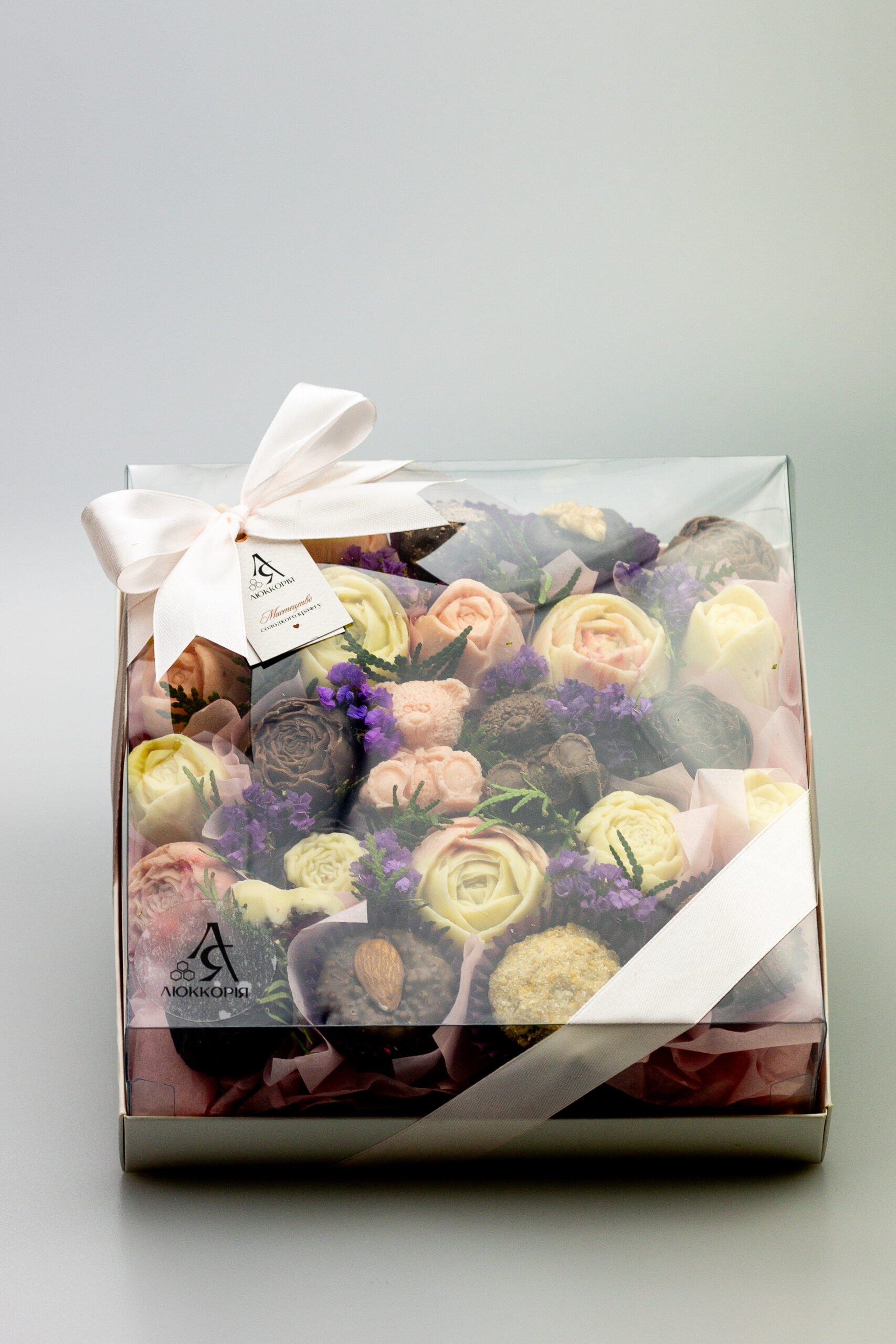 Романтична композиція з шоколадних квітів, фігурок та авторських солодощів ручної роботи. Ідеальний подарунок, щоб сказати “люблю” без слів ❤️