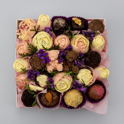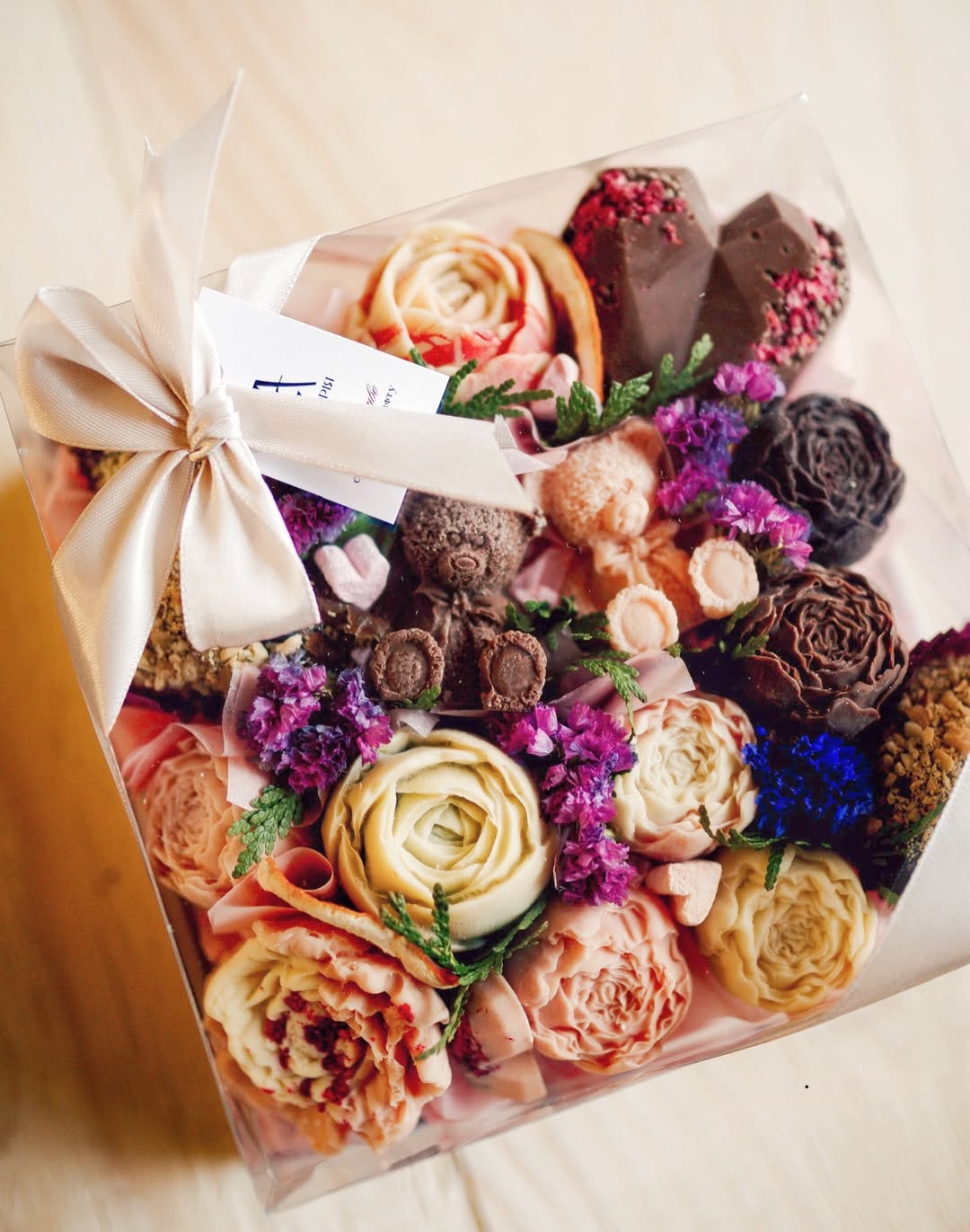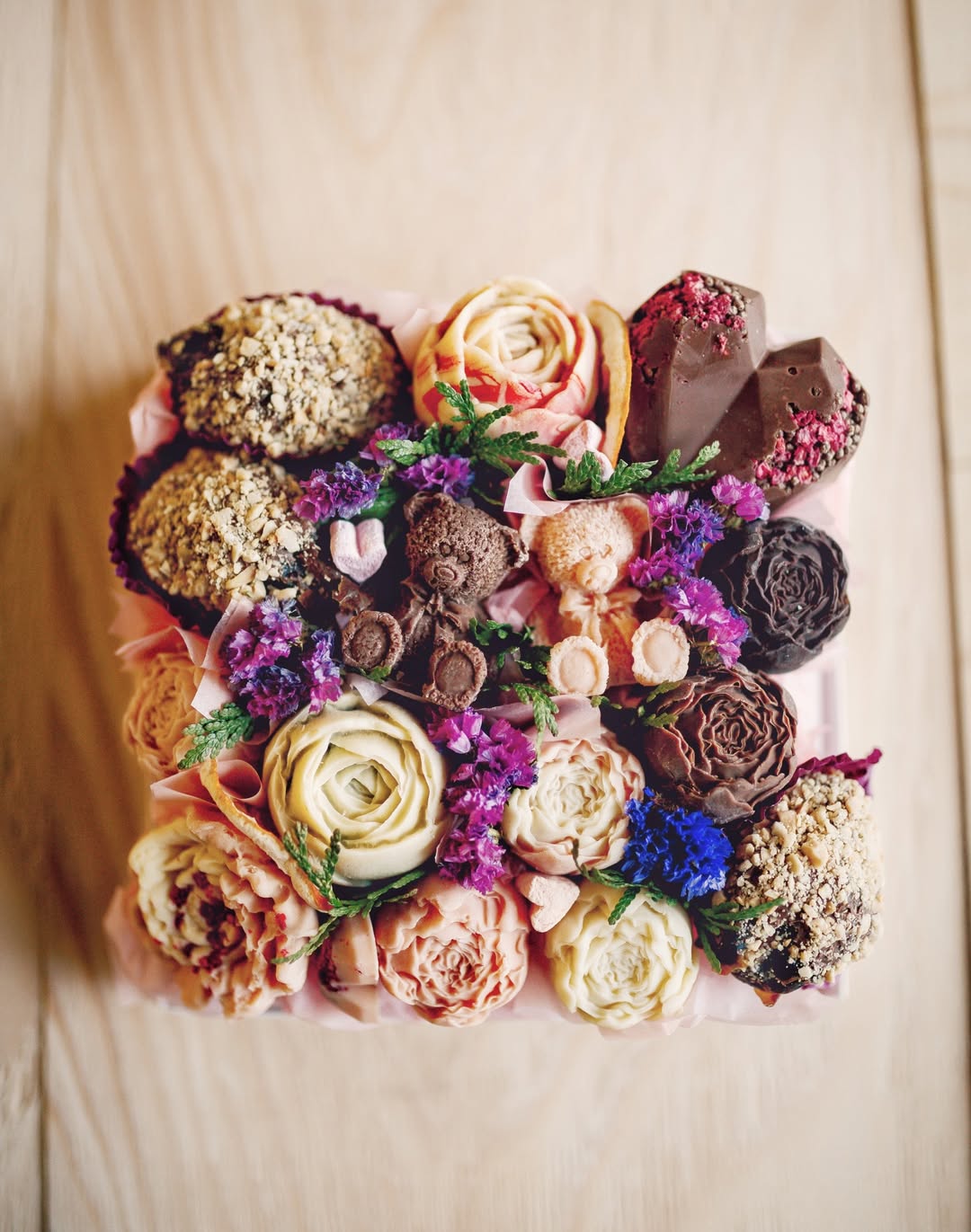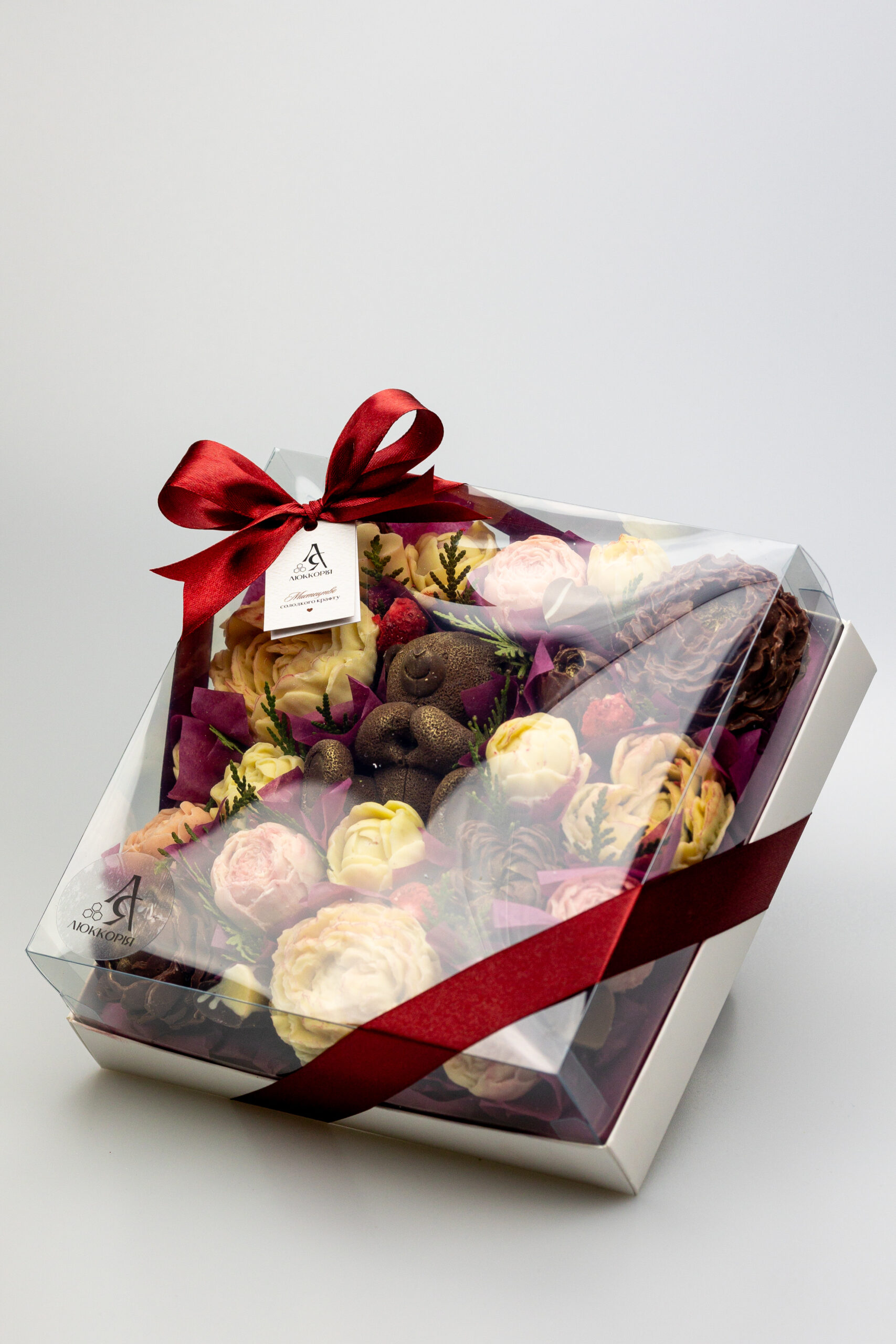 Романтична композиція з шоколадних квітів, фігурок та авторських солодощів ручної роботи. Ідеальний подарунок, щоб сказати “люблю” без слів ❤️